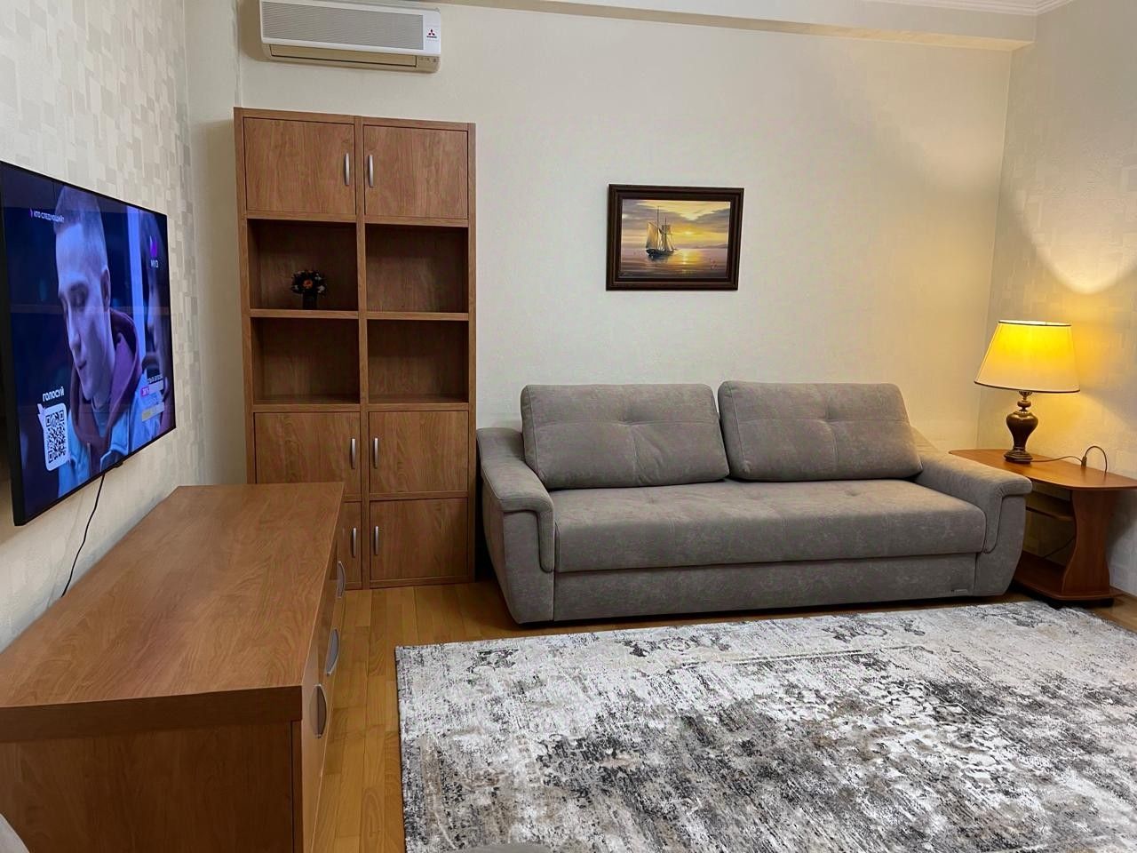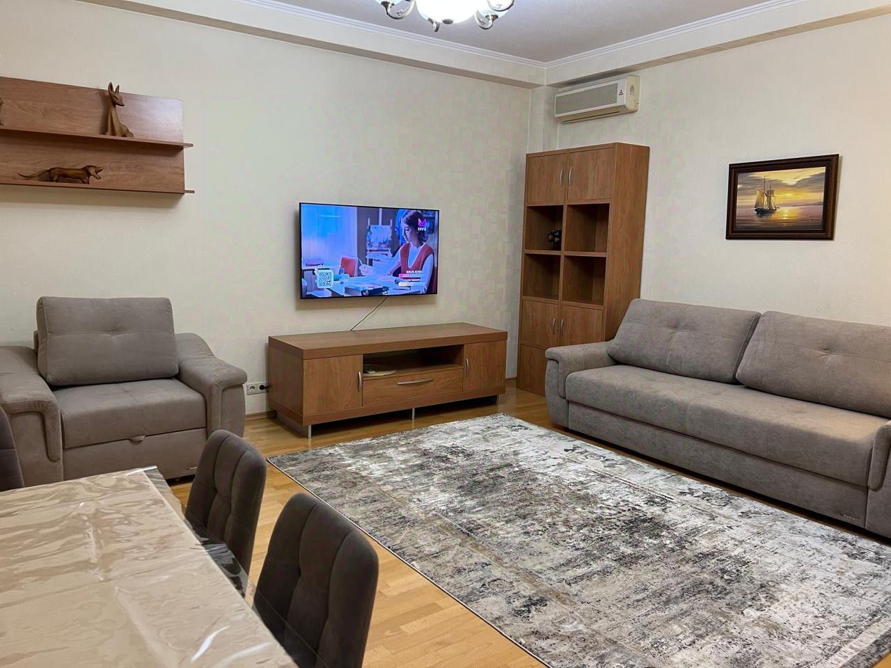 Квартира полностью укомплектована качественной мебелью, и техникой. Просторная кухня-столовая, в которой есть все необходимое для комфортного проживания в квартире. . В наличии 3 кондиционера, кабельное ТВ и стиральная машина, холодильник, утюг, гладильная доска, фен, качественная посуда и постельное белье, Wi-Fi. Холодная и горячая вода постоянно.