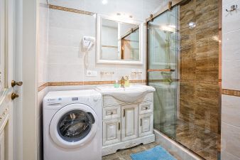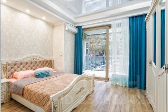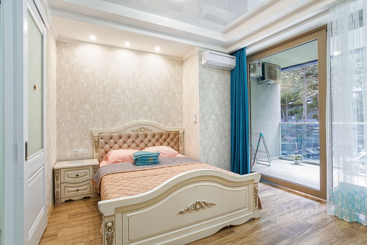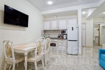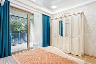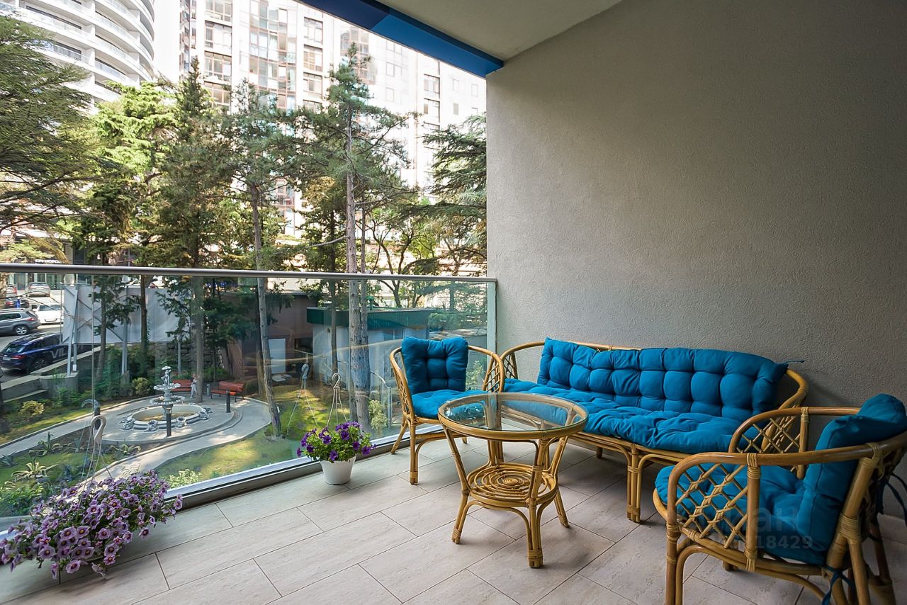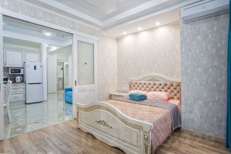 состоит из студии и отдельной спальни с большой террасой вид в парк, полностью укомплектованная кухня: плита духовка чайник вся посуда!