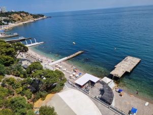 Сдаются апартаменты на берегу моря, в парковой зоне Мисхорского парка в ЖК Парк-Холл. Дом находится на пляже Русалка. Рядом магазины, кафе, столовая, канатная дорога, санатории, что хорошо, как для летнего, так и для зимнего оздоровительного отдыха. В апартаментах есть всё для комфортного проживания, два телевизора, два кондиционера, wi-fi, тёплые полы, и т. д. В доме охрана, пож. сигнализация, консьерж.