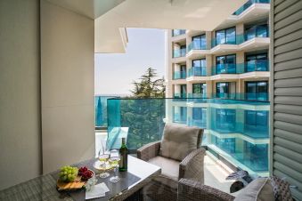 Апартаменты находятся в новом комплексе премиум класса "Sky plaza" в 150 метрах от пляжа в живописном районе - вблизи отеля "Ялта-интурист" и Массандровского парка. Уютная квартира для семьи или компании из 4-х человек.