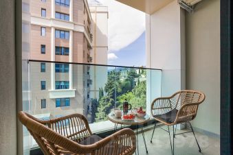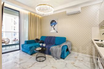 А в совершенно новом комплексе, конечно же, совершенно новый апартамент. В нем комфортно разместится романтическая пара, семья из 4 человек, подружки, две мамочки со своими детьми. В апартаменте отдельная спальня с двухместной кроватью, кухня-гостиная с огромным раскладным диваном, обеденный стол. Если вы любите готовить даже в отпуске, вы найдете для этого все, посудомоечная машина тоже есть. Чтобы выпить кофе на балконе, для вас капсульная кофемашина.