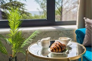 150 метров разделяет вас от чашки кофе на балконе до утренней морской волны. Один из лучших пляжей Ялты встречает набережной с кафе и ресторанами, дельфинарием, спортивной и детской площадками для темпераментных гостей. Для самых активных совсем рядом веревочный парк "Лень в Пень", скалодром, батутный центр.