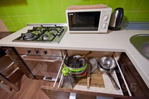 Квартира оборудована всем необходимым для комфортного проживания - 6+1 спальных мест, кондиционер, холодильник, телевизор, интернет, стиральная машина.