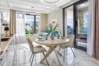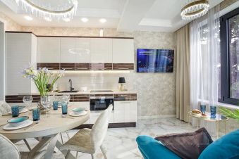 Добро пожаловать в апартамент "золотой ананас" в новом жилом комплексе скай плаза 2. Просторный, светлый, уютный, с большим балконом, номер рассчитан на четверых гостей. Здесь будет комфортно романтической паре, семье с двумя детьми, компании подружек. В спальне двухместная кровать, в гостиной раскладной диван. Отдельное место отдыха с креслом, кофейным столиком и торшером, где можно почитать. Что бы вы не делали в апартаменте, вы всегда будете видеть море. Проснетесь утром - перед вами море, обедаете за столом -смотрите на море, с чашкой кофе на балконе любуетесь морем. В апартаменте есть все для жизни и отдыха: стиральная и посудомоечная машины, холодильник, чайник, капсульная кофемашина, посуда и бокалы, гладильная доска, сушилка для белья, утюг, фен, полотенца. В номере кодовый замок, возможно удаленное заселение. Территория комплекса порадует пышными пальмами, детской площадкой, продуктовым магазином и бутиком крымских вин. Отдельно можно забронировать машиноместо в подземном паркинге за доплату при наличии. Если вы любите готовить даже в отпуске, вы найдете для этого все, посудомоечная машина тоже есть. Чтобы выпить кофе на балконе, для вас капсульная кофемашина.