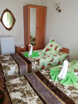 2х местный эконом находится на втором этаже, . Номер оснащён кровать семейная 160см. Шириной, или две односпальные, плательный шкаф, трельяж, зеркало прикроватные тумбочки, кондиционер, холодильник, кабельное т\в, интернет, пастельное бельё, комплект полотенец, фен. Туалетная и душевая кабина в номере, (набор личной гигиены), горячая и холодная вода постоянно. Выдаются пляжные принадлежности, гарантируется надёжность и охрана номера.