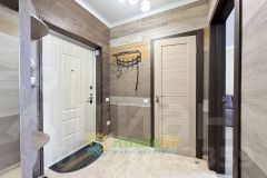 Интерьер выполнен в приятной светлой гамме, что визуально делает квартиру больше. А отдельные контрастные элементы к примеру, темные шторы привносят в обстановку особый шарм.