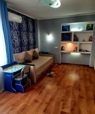 Есть игровая стенка для детей,стульчик для кормления ребёнка, игрушки, книжки, и все что нужно для комфортного отдыха ребёнка.
