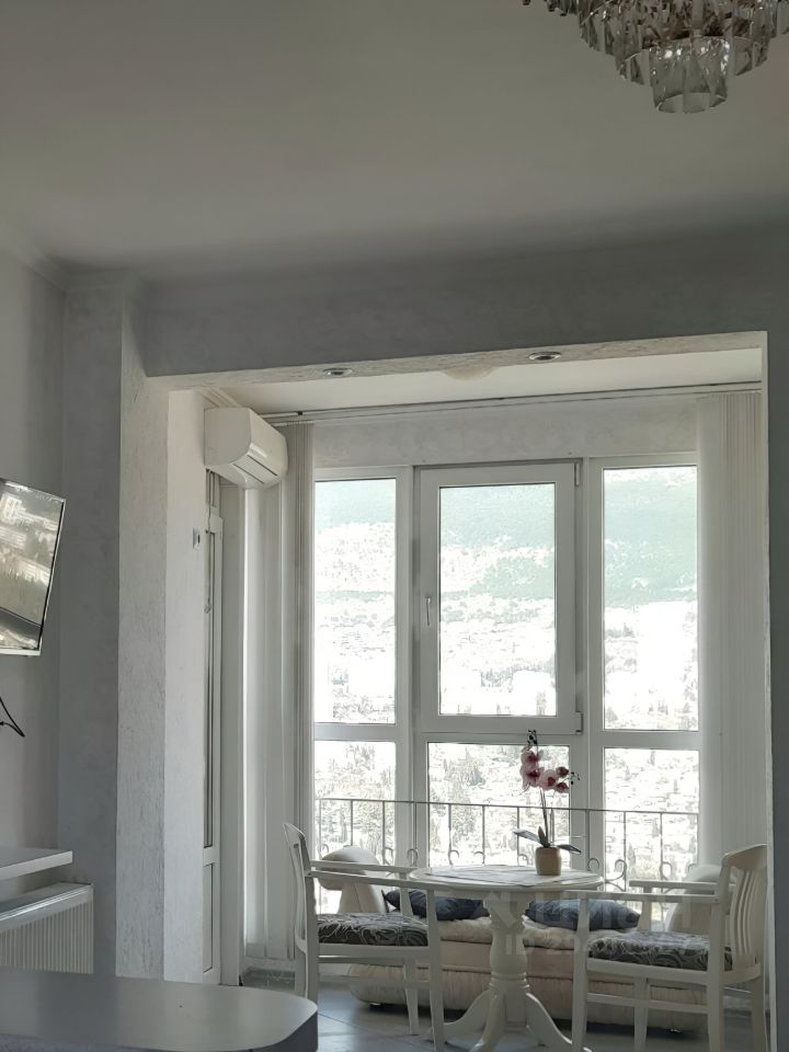 Самая панорамная квартира с видом на море и набережную Ялты. Только с панорамы нашего дома, можно увидеть , заход всех яхт и кораблей в порт города. Есть эркер с выходом на балкончик. Морской воздух будет залетать к вам , в течении дня. А так же сможете увидеть все салюты с набережной города.