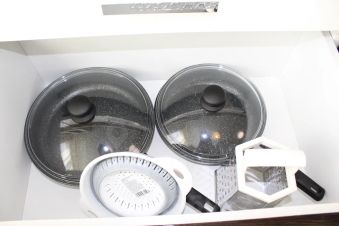 - Плита, духовой шкаф, холодильник, микроволновая печь, электрический чайник, холодильник, набор посуды;