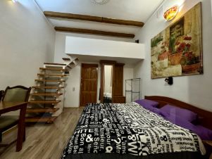 Небольшая студия на Набережной. Очень удобная локация . Массандровский пляж в 300 метрах . Спальные места: двуспальная кровать и на втором уровне спальное место для одного человека. Стоимость аренды 2000-3000 ₽ в сутки . Зависит от срока аренды и количества гостей, а также от сезона .