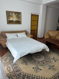 Просторная квартира 120 м2 в центре Ялты, с гостиной, двумя отдельными спальнями, большой кухней со столовой группой, две лоджии, ванная. Комплектация: белоснежное постельное белье и комплекты полотенца, халаты, одноразовые тапочки на каждого гостя; подушки на выбор по наполнению и размеру, туалетно- косметические принадлежности для тела и волос премиум класса. АКВАТОР - фильтр для воды. Скоростной интернет: WiFi и WiFi 5 G Кабельное TV, Алиса, Автономное отопление.