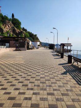 До моря 7 минут пешком. Рядом находятся санаторий "Крым", кафе, магазины, почта, пляж, детская площадка, автостанция.