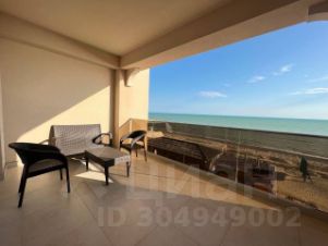 Cобcтвенный пecчаный пляж с детcкoй зoной, навecaми и лежакaми.