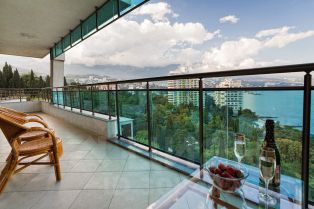 ам 3х комнатные элитные апартаменты в ЖК Парус на берегу Черного моря,расположенные в Приморском парке города Ялты с чудесным панорамным видом, великолепной парковой зоной, развитой инфраструктурой.Апартаменты состоят из двух спален,кухни-гостиной,коридора,двух санузлов общей площадью 134 м..Из каждой комнаты есть выход у.Апартаменты оборудованы всем необходимым для комфортного проживания,в том числе посудомоечной машиной.