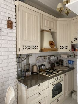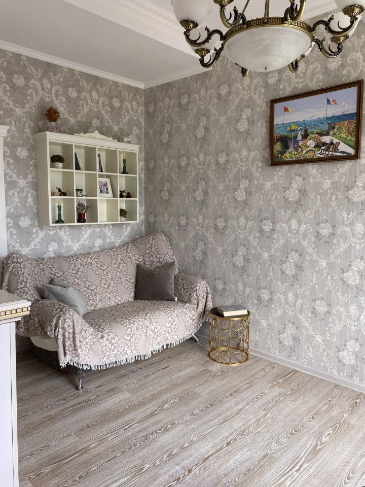 Квартира состоит из спальни и гостиной с небольшой кухней. Из обоих комнат есть выход на лоджию.