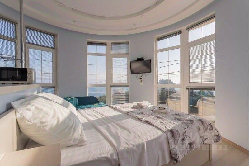 Вид на море и горы Ай-Петри !!! Круглая студия с панорамными окнами в пол по кругу- сумасшедший обзор!!! Необычные апартаменты даже для Крыма.СДАЧА ДО ЛЕТА!!!!!!!!( в мае повышение) .Есть вариант проживания до июля.