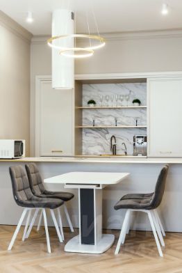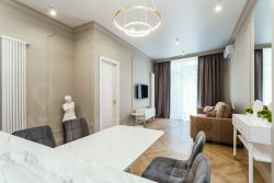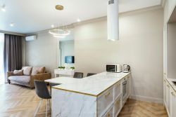 Апартаменты обладают дизайнерским ремонтом, гармонично сочетая стиль и функциональность