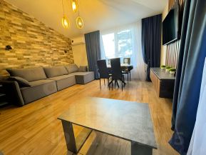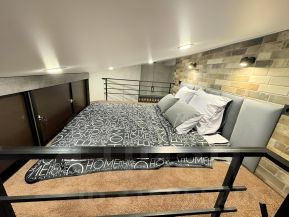 Номер двухуровневый, на первом этаже два полноценных дивана, которые раскладываются в 2хспальное место и дополнительное место оттоманка, полностью оборудованая кухня с холодильником и столом, много места для хранения, удобный санузел со всем необходимым. На втором этаже двуспальный комфортный ортопедический матрас askona.