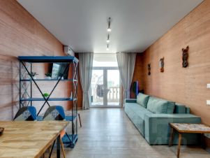 Новая уютная евро-двушка с авторским дизайном и мебелью из натуральных материалов. Вид на море и горы !