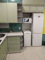 В квартире 2 изолированные комнаты, коридор, просторная кухня. В каждой комнате и на кухне телевизор. На кухне есть газовая плита, холодильник, микроволновая печь, вытяжка, вся необходимая посуда. Все удобства, горячая и холодная вода постоянно, кондиционер, стиральная машина, утюг, фен, ТВ(кабельное), интернет WI-FI. Предоставляется постельное белье, полотенца, Во дворе есть место для отдыха, мангал.