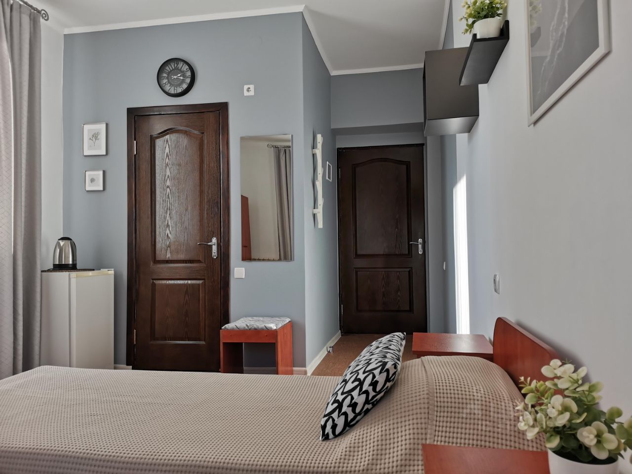 В отеле 9 комфортных, уютных номеров с современным дизайном (2х, 3х и 4х местные, два номера с отдельным входом и собственной кухней на два номера). Каждый номер оснащен необходимой техникой (чайник, холодильник, кондиционер, фен), санузлом с душем. Мини-отель расположен в гостиничном комплексе Скиф, территория которого небольшая, но очень уютная. Много разнообразных хвойных деревьев, южных растений и цветов. Территория комплекса круглосуточно охраняется.