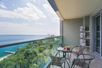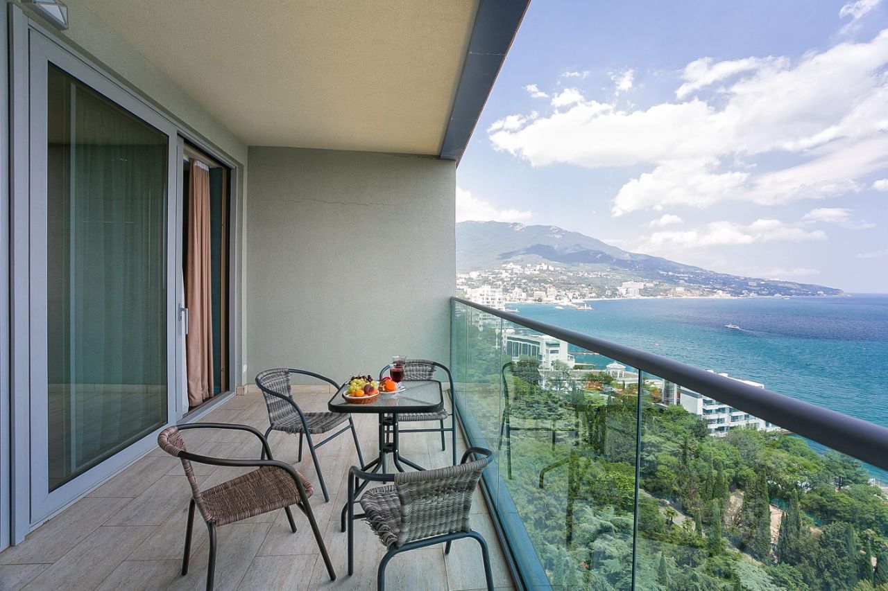 Особенности: Гостиная с раскладным диваном, полноценная кухня с духовкой, посудомоечной машиной и всей необходимой посудой. Терраса с мебелью и потрясающим прямым видом на море.