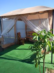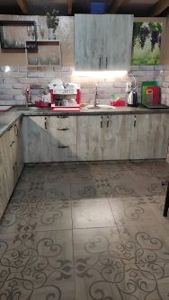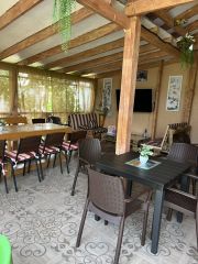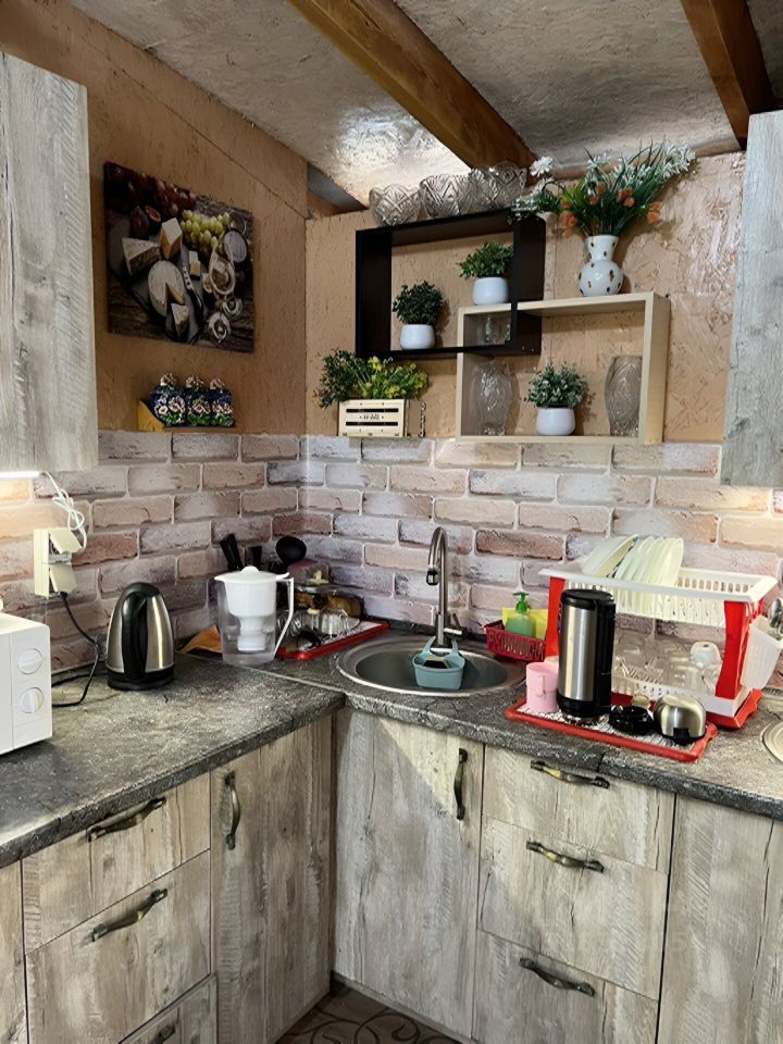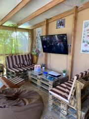 Летняя кухня, оборудованная всем необходимым для самостоятельного приготовления пищи.