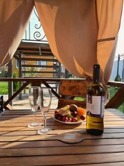 Спешите поймать этот сезон, когда море теплое, солнышко ласковое, виноград сладкий, вино терпкое к нам можно добраться на автомобиле, на поезде (станция Владиславовка), на автобусе.