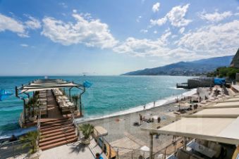 4 минуты - отель Ялта интурист в нем можно за доп плату.