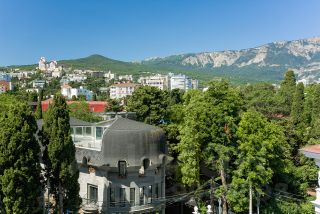 Балкoны: Два французских балкoнa с видoм на Ялту и гopы.