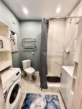 Квартира находится в районе с развитой инфраструктурой, рядом находятся магазины и остановки общественного транспорта. Море в 2км от дома, центр города в 5-7 мин ходьбы.