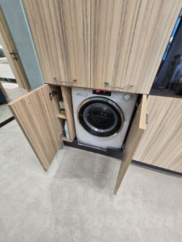 Кухня-гостиная - 2х спальный диван с пружинным матрасом, стол, стулья, кухня с плитой, духовкой, вытяжкой, посудомоечной машиной, чайник, тостер, вся необходимая посуда, стиральная машина, холодильник, телевизор SmartTV ( техника Samsung, Candy, Haer).