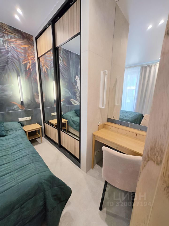 Спальня - двуспальная кровать с ортопедическим матрасом, шкаф-купе, туалетный стол,тумбы.