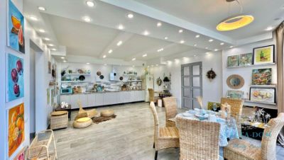 Прихожая с вместительным шкафом, зеркалом, санузел с ванной и стиральной машинкой, санузел гостевой, просторная кухня-гостиная со всем необходимым, вход в спальню, столик для макияжа,TV, кондиционер, двухспальная кровать; зона отдыха с раскладным диваном, кондиционером, панорамным остеклением с видом на море и горы.