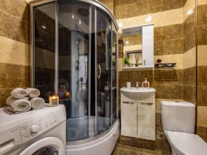 Опрятная и просторная ванная комната + свежие полотенца, средства личной гигиены, тапочки и тд.