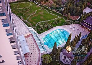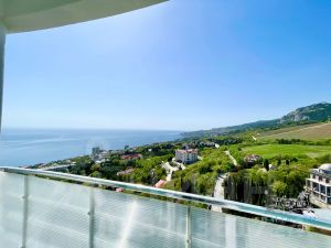 Трехкомнатный видовой апартамент, общей площадью 180 квадратных метров, расположен в элитном комплексе "RESPECT HALL RESORT&SPA", на семнадцатом этаже; прямой вид на море, панорамные окна, терраса, балкон, две спальни с двухспальными кроватями, зал с раскладным диваном, три санузла, кухня-гостиная со всем необходимым, (посудомоечная машина).