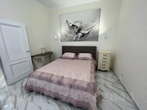 Квартира полностью меблирована и оборудована для вашего удобства. Здесь вы найдете просторную двуспальную кровать для спокойного сна, удобный диван для отдыха, а также два современных телевизора и два кондиционера, чтобы обеспечить приятную атмосферу в любое время года. Вместительный шкаф-купе позволит удобно разместить ваши вещи.