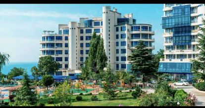 На территории комплекса есть : 2 бассейна, детские и спортивные площадки, магазины, пункты доставки, большая, утопающая в зелени территория. До пляжа 15 мин пешком .