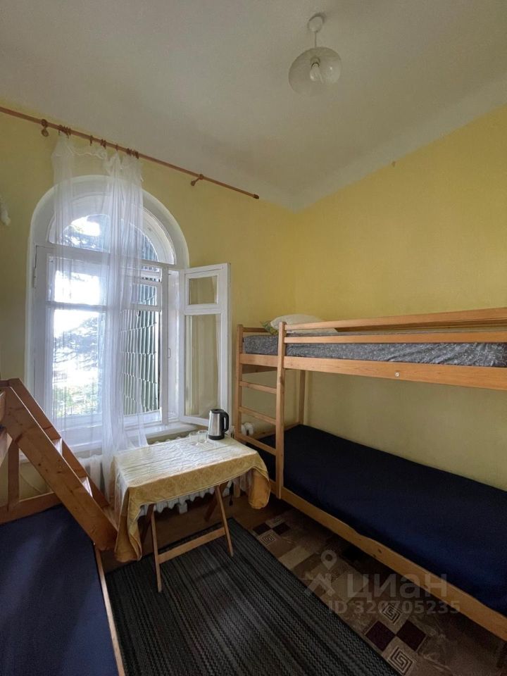 Студия рассчитана на проживание до 4 человек, расположена на втором этаже двухэтажного дома в посёлке Массандра, рядом с остановкой Верхняя Дружба. В номере — две двухъярусные кровати (каждому гостю отдельное спальное место), кондиционер, холодильник, индукционная плита, чайник. Санузел находится внутри студии, кухня индивидуальная (не общая), с необходимым минимумом для приготовления пищи. Стиральная машина — в общей зоне. До Массандровского пляжа — около 25 минут пешком.