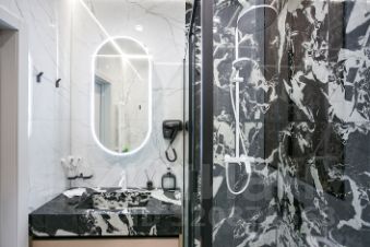 до 4 человек (кровать и диван раскладной) + санузел + терраса с видом на парк.