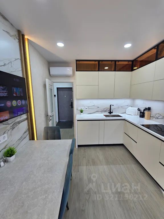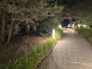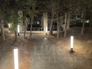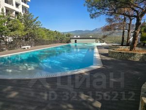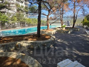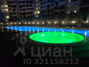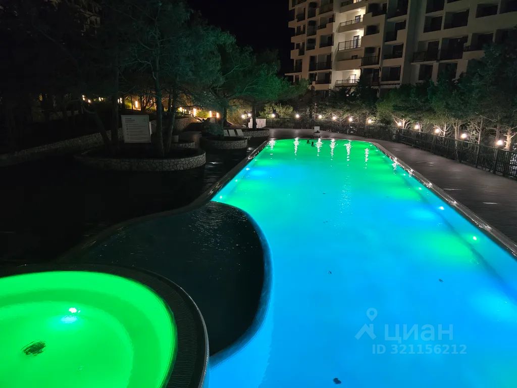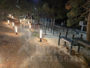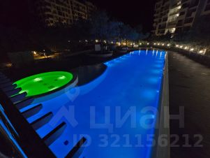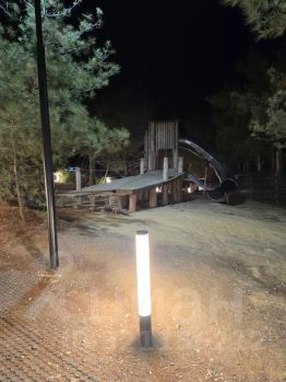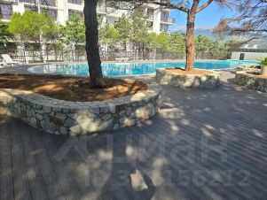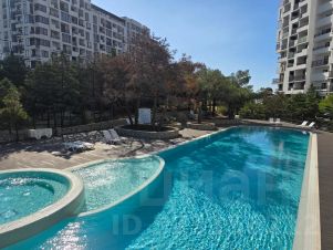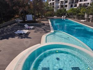 Закрытая территория с тёплым бассейном детской площадкой и парковой зоной.