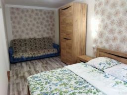 В спальной комнате есть двуспальная кровать, двуспальный диван и необходимая мебель. Предоставляются постельное бельё, полотенца и посуда. В квартире есть кондиционер, телевизор с кабельным телевидением, Wi-Fi, холодильник, электрический чайник, микроволновая печь, стиральная машина, газовая плита и газовый водонагреватель. Также доступны утюг с гладильной доской, сушилка для белья и фен. Предоставляются средства гигиены, включая гель для душа, шампунь и жидкое мыло для рук.