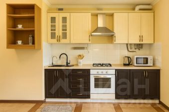 Полностью оборудованная кухня: плита, микроволновка, посудомоечная машина, чайник
