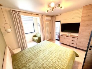 Квартира полностью оснащена всем необходимым: посуда, белое постельное белье, полотенца, кондиционеры, фен, посудомойка, микроволновка, стиральная машина с сушкой, два больших телевизора 55 дюйма, Wi-Fi, утюг и гладильная доска.