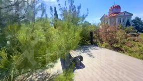 Ухоженная территория комплекса — настоящий рай среди хвойных деревьев реликтового парка, открывающий завораживающие панорамы на город Алушту, бескрайнее море и величественные горы Демерджи.