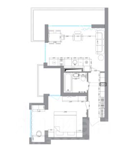 Просторная кухня-студия и отдельная спальня с рабочей зоной-кабинетом обеспечат удобство и функциональность для гостей, будь то отдых или работа на удалёнке.