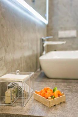 Номер уютно обставлен и оснащён необходимым, чтобы отдохнуть после долгого и насыщенного дня. Имеются телевизор и халат. Оснащение зависит от выбранной категории номера.