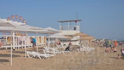 Мелкий, золотистый песочек, чистая вода и удобный заход в море идеально подходят для отдыха гостей Крыма всех возрастов. Пляжная зона на всей протяженности полностью оборудована: кафе, шезлонги, водные горки, надувные батуты, и прочие развлечения.