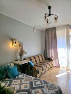 До песочного пляжа 600 метров, 10 минут прогулочным шагом.