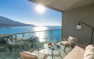 Особенности: Гостиная с раскладным диваном и односпальной кроватью, полноценная кухня с духовкой, посудомоечной машиной и всей необходимой посудой. Терраса с мебелью и потрясающим видом на море.